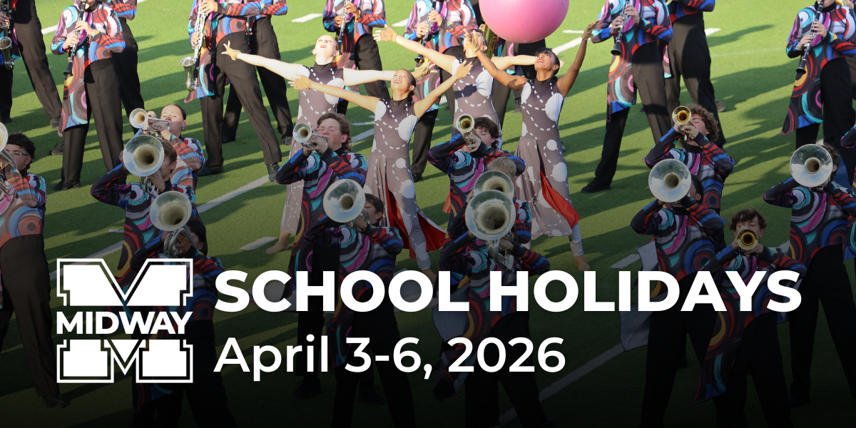 🗓️ REMINDER: Midway ISD campuses and offices will be closed on Friday, April 3 and Monday, April 6, 2026 for school holidays. Classes will resume at regular times on Tuesday, April 7.